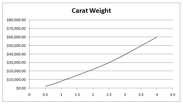 As illustrated in figure one, the price of diamonds increases as the carat weight increases because carat weight or size is a good indication of a diamond's rarity. Like those used to make 2-carat diamond rings, larger diamonds are much harder to locate and are thus considered a rare find. However, many experienced diamond experts will state that the size of a diamond has the most negligible impact on the price.