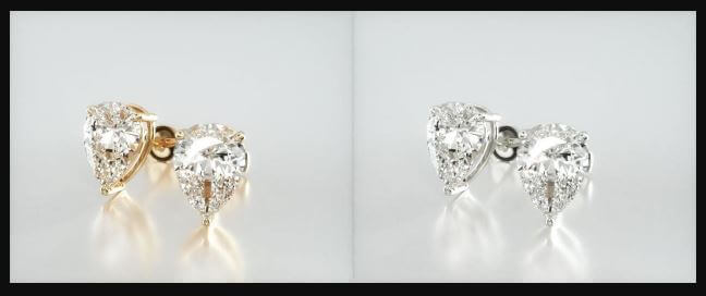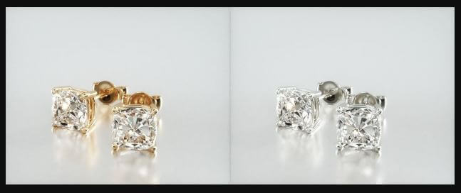 Three main factors to consider for stud earrings are the diamond shape, settings, and back. Popular shapes of the diamond studs include round, oval, pear, emerald, cushion, Asscher, marquise, and princess cuts. The circular shape of the round cut is very popular. Both the squared-shape princess and asscher cut diamond studs are also the most common. Due to the distinctive shape of the pear and marquise diamonds, it would be quite obvious if a pair of either the pear or marquise shape diamond studs do not have matching proportions. As a result, they are the least common. However, the choice of the diamond shape is mostly about the taste and preference of the wearer.